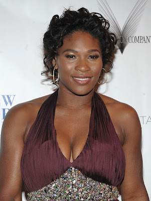 Serena Williams looks sensational in this burgundy embellished dress. I just wish her hair didn't look like she got it done in someone's basement. Who is doing her hair? It's just doesn't look polish.