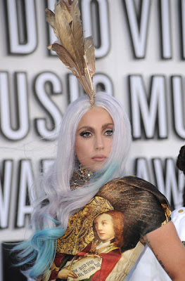 Lady GaGa is in her own little world and we are mere mortals. The outrageous singer wore a magnificent ornate Alexander McQueen creation. Who else can get away with this? The Fall 2010 was the designer last collection by him before he died. The singer wore this same dress on the cover of Vanity Fair last month.