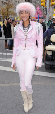 Keri Hilson looks like an adorable ice princess in her pink embroidered ensemble. This get-up is perfect for a parade but definitely not on the red carpet.